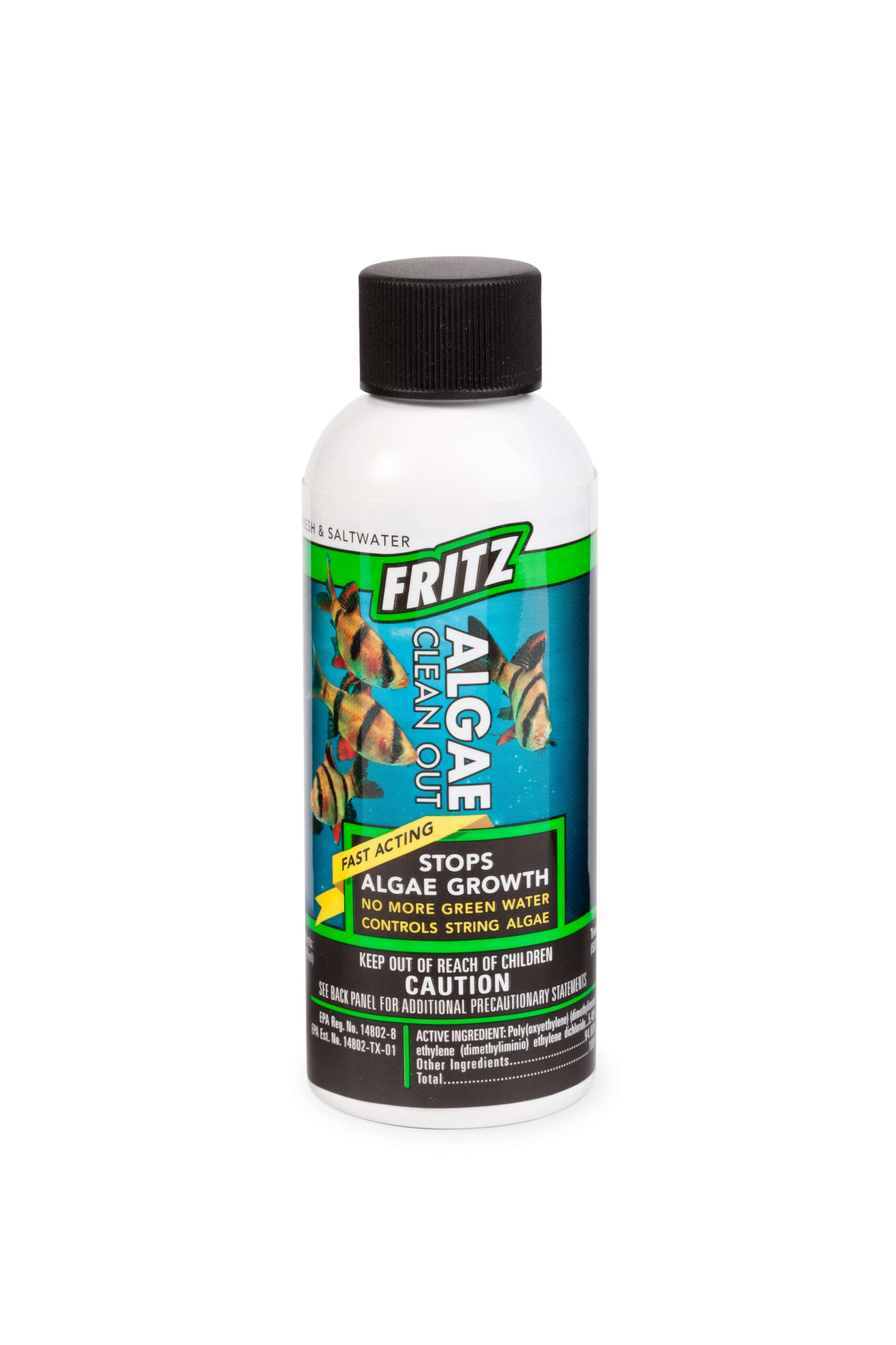 Excessive algae growth is the most common complaint of aquarium keepers of all experience levels. Excessive algae growth is both unattractive and hazardous to fish and plant life. Fritz Algae Clean Out is the most concentrated EPA-registered algaecide formula available. Algae Clean Out® targets string algae, blanketweed and green water caused by single-celled algae. Unlike some algaecides on the market, Fritz Algae Clean Out contains no copper and is a selective algae control product that will not harm fish and live plants when used as directed.
